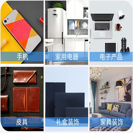 廣泛應用于各行各業及產品上,如:手機、家用電器、電子產品、皮具、禮盒裝飾、家具裝飾、酒瓶、產品……