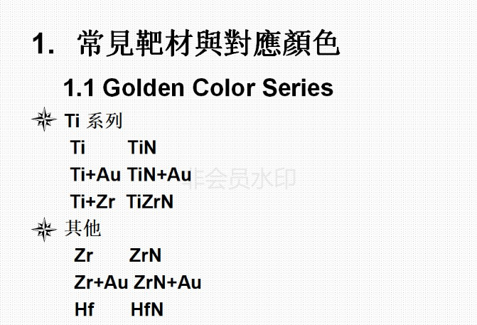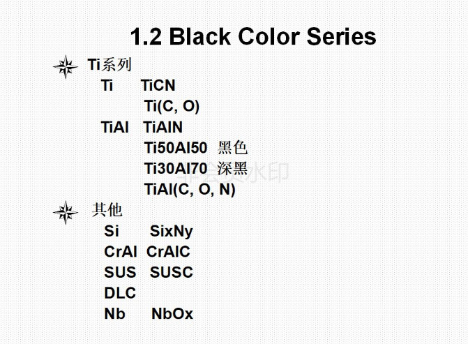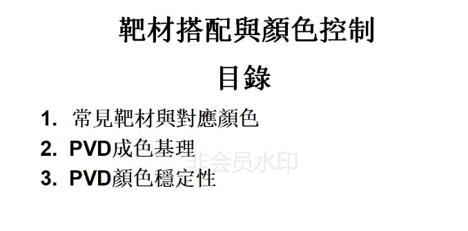 5)、PVD技術(shù)不僅提高了 鍍膜與基體材料的結(jié)合強(qiáng)度,涂層耗材種類繁多,還有多元復(fù)合涂層,形成不同的顏色的表面效果。